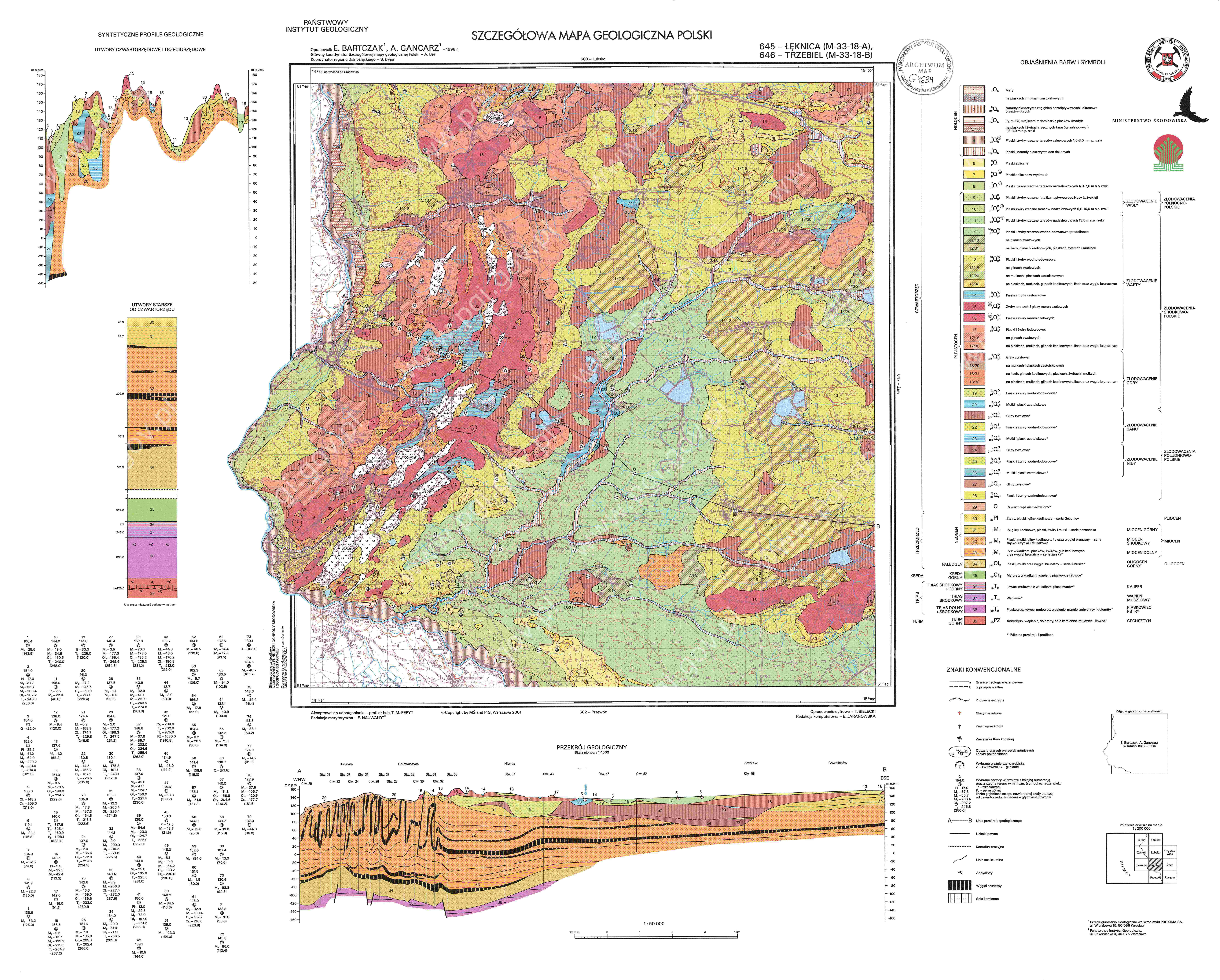 Bartczak E. & Gancarz A., 1998. Szczegółowa mapa geologiczna Polski 1:50 000. Arkusze 645 – Łęknica (M-33-18-A), 646 – Trzebiel (M-33-18-B). Państwowy Instytut Geologiczny (Polish Geological Institute), Warszawa. https://bazadata.pgi.gov.pl/data/smgp/arkusze_skany/smgp0646.jpg [access: 20.03.2025].
